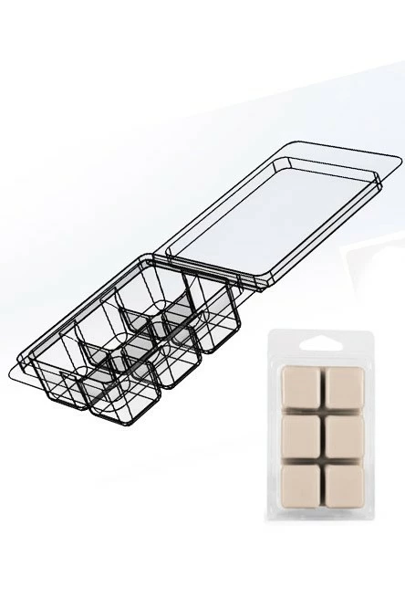 clam shell wax melt packaging. Clear plastic clam shell for cube shaped scent tarts. Pour wax right into the clam shell for instant packaging! (pour at low wax temperature) Simply snap wax in package and place wax snap in a tart burner. Each clam shell holds approx. 3 oz. wax. Makes (6) 1″x1″ wax snaps. Quantity: 700 clam shell wax melts per order. For larger quantity discounts and no minimum order please visitΒ www.allwhitecandles.comΒ This product is for packaging only, wax not included. Our 6 cavity clam shells for snaps are made in the USA. Sku# – 700Snap