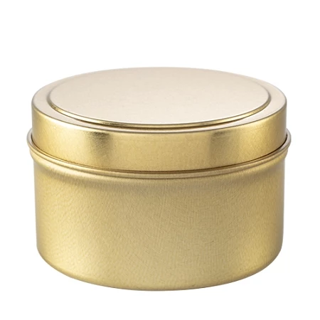 scented soy coconut gold travel tin candles for private labeling. Just create your label and add to the soy candle in tin. Now you can choose the wick type, fragrance and colors. Choose up to 8 fragrances and select color for each fragrance. Hand poured ultra scented soy coconut gold travel candle. The soy travel candle is available in over 140 fragrances. Gold private label soy coconut travel tins are gold tin and lid that measure 2.75 inch diameter by 1.75 inch tall and hold 6 ounces of wax or let us print your designed label and adhere it to the tin. Great candle to start your own candle business. If you are ordering for private label and would like to place a label on the lid a 2.5 inch round label fits the lid perfect.Β