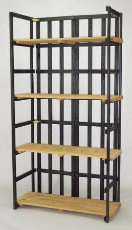 solid Spruce folding shelf unit with 4 removable shelves – 72″H X 38″W X 18″D made in the USA.